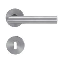 | Eine Rosettengarnitur setzt sich zusammen aus zwei Drückerrosetten mit zwei Drückern (Türklinke), zwei Schlüsselrosetten, einem Vierkantstift und passenden Schrauben. Die Rosettengarnitur ist die aktuell meistverkaufte Variante. | ![]() |